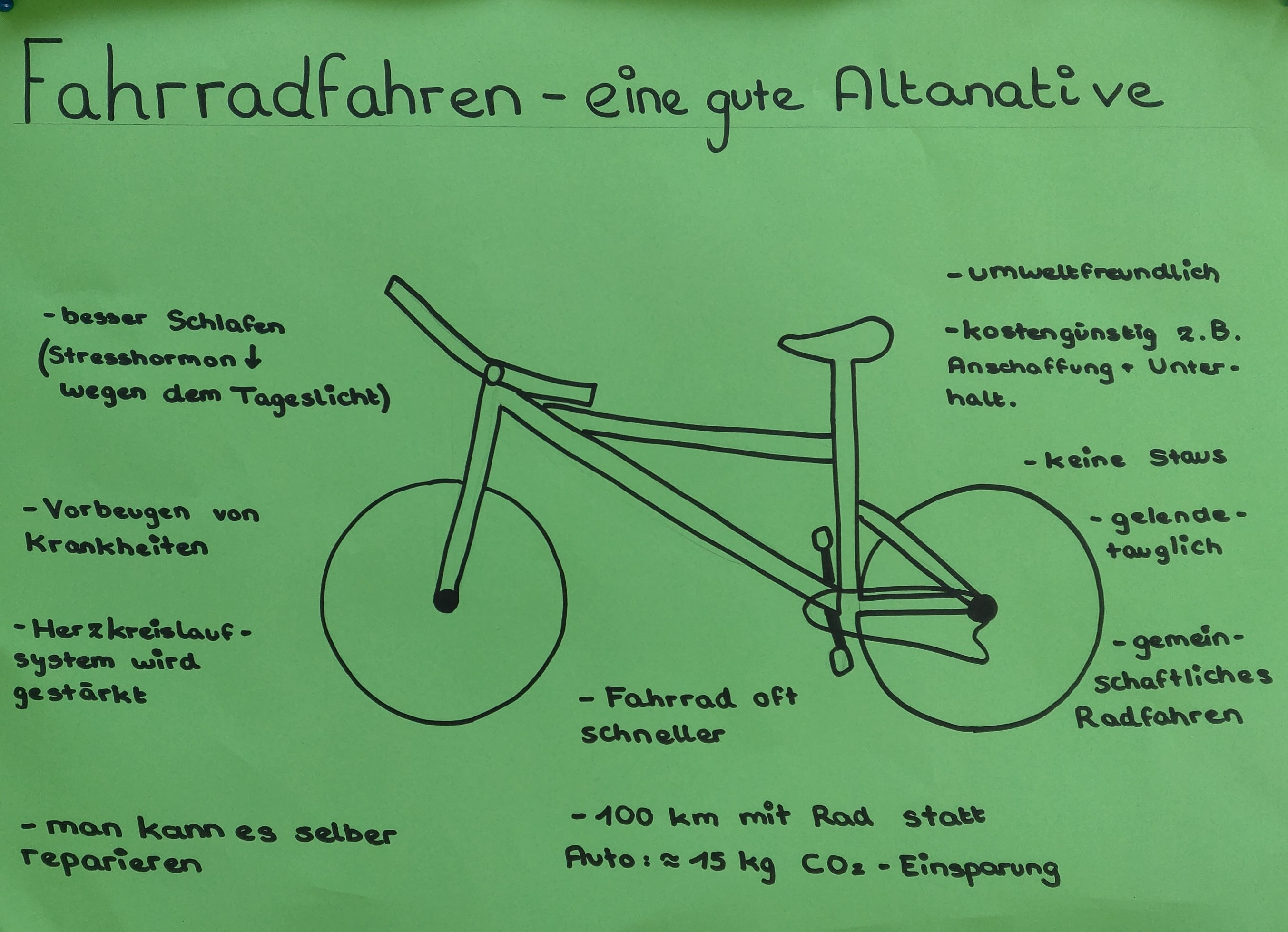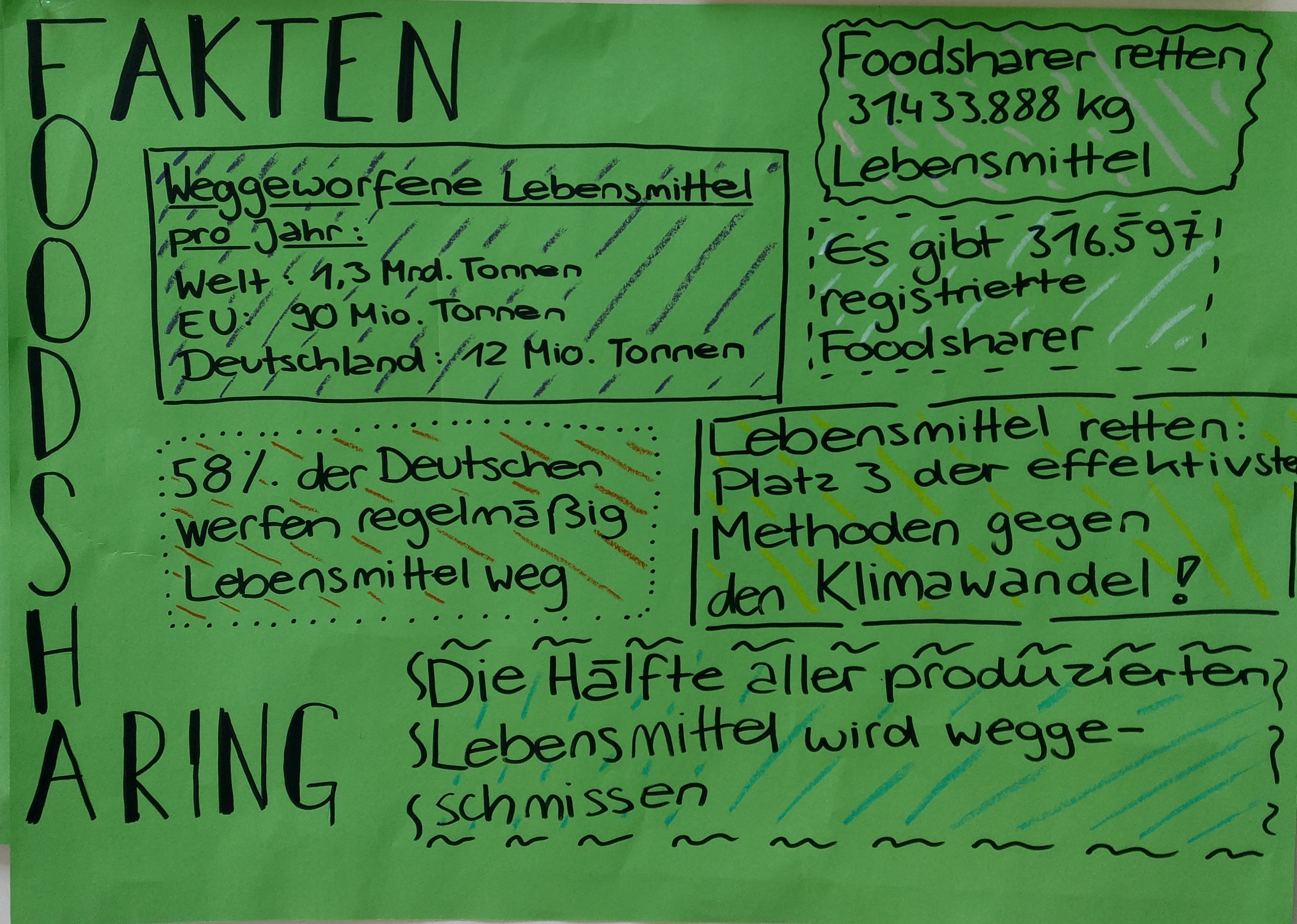 Damit jedes Mitglied der Schulgemeinschaft auch die Ergebnisse der anderen Arbeitsgruppen erfährt und um diese festzuhalten, wurden in den einzelnen Projekten noch am selben Tag Plakate gestaltet, welche das jeweilige Projekt veranschaulichen sollten. Auch war es die Aufgabe eines jeden Projekts, der zentralen Frage der Station, für die man verantwortlich war, nachzugehen. Diese wird in Form eines Quiz an die Klassen weitergegeben. Damit soll das Ziel des Projekttages nochmals bei allen Teilnehmenden überprüft und zugleich vertieft werden: nämlich, dass Nachhaltigkeit bei jedem selbst im Kleinen beginnt. Nur, wenn jeder Einzelne Ansätze für Verbesserung findet und dementsprechend handelt, kann Nachhaltigkeit gelingen.